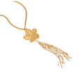 The Seraphina Blossom Pearl Tassel Necklace features a beautifully textured floral pendant that flows into delicate chains adorned with luminous pearls. The cascading tassel design creates soft movement and adds an elegant feminine touch to the piece.